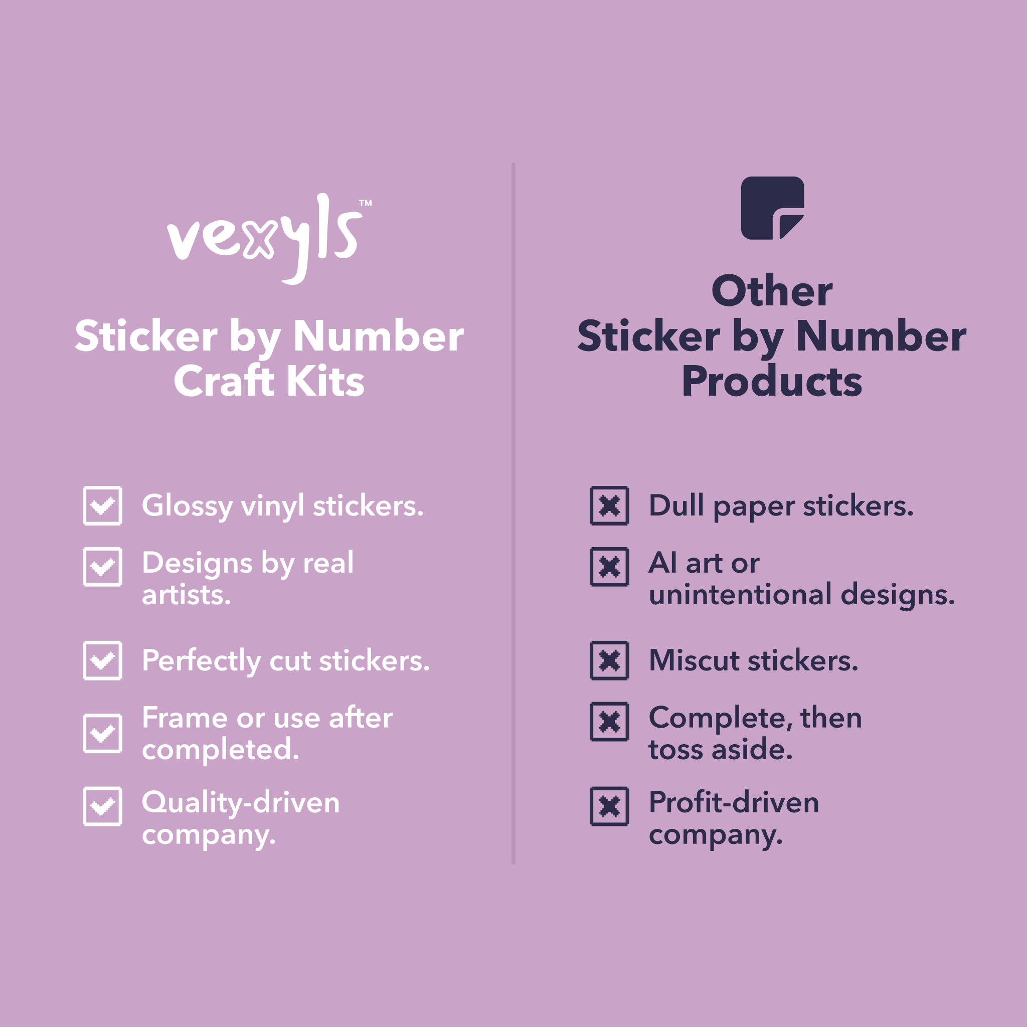 Our premium vinyl stickers is what separates us from existing sticker by number booklets and other brands who have tried to replicate our products.